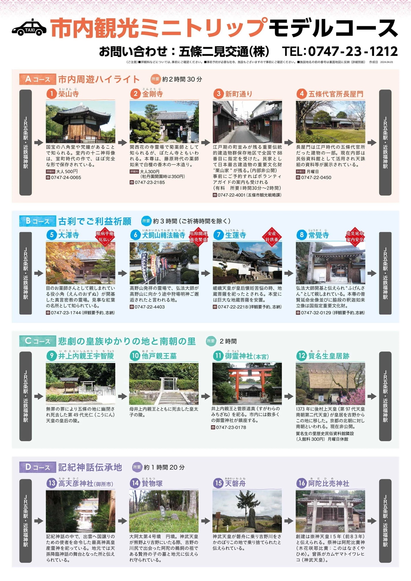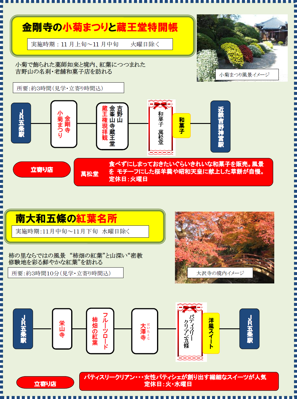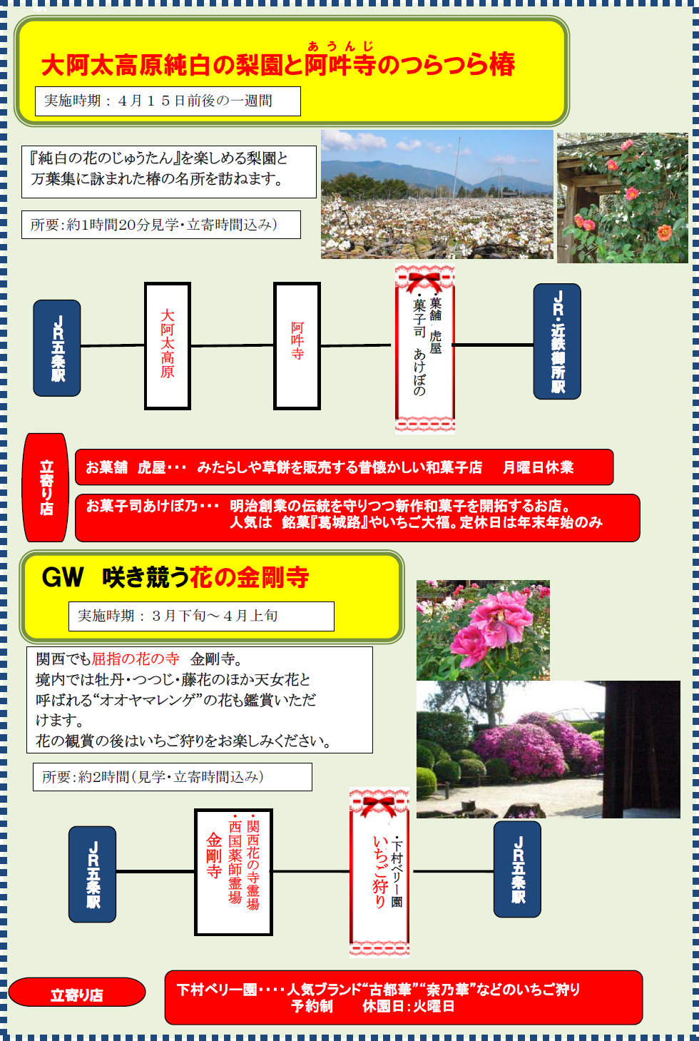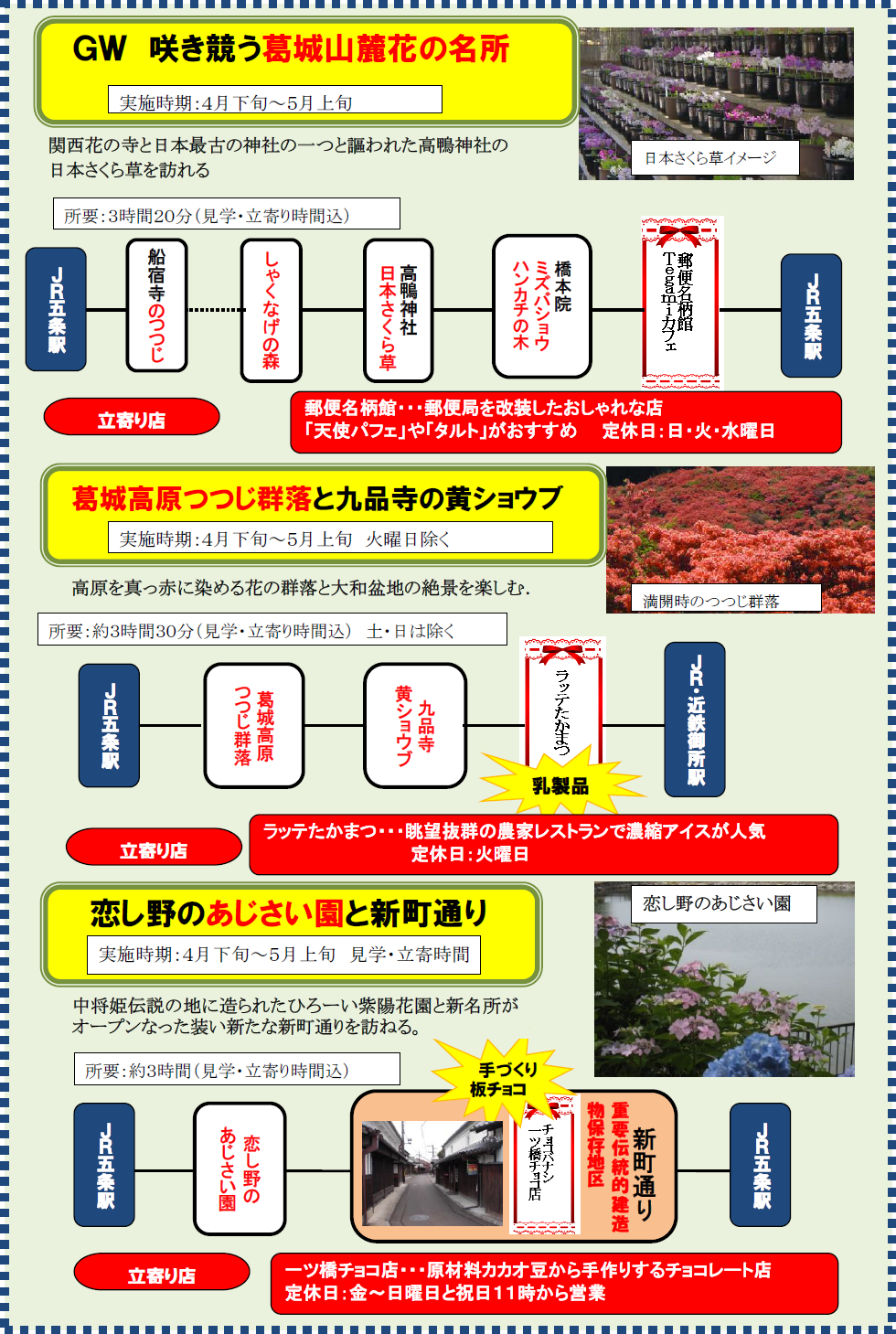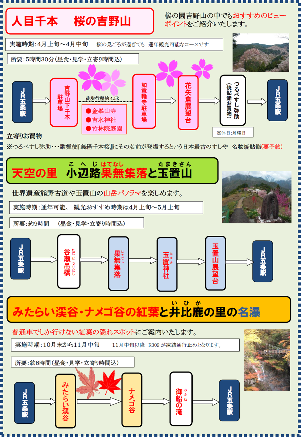奈良県の南西部の玄関口 五條発の観光モデルコースです。